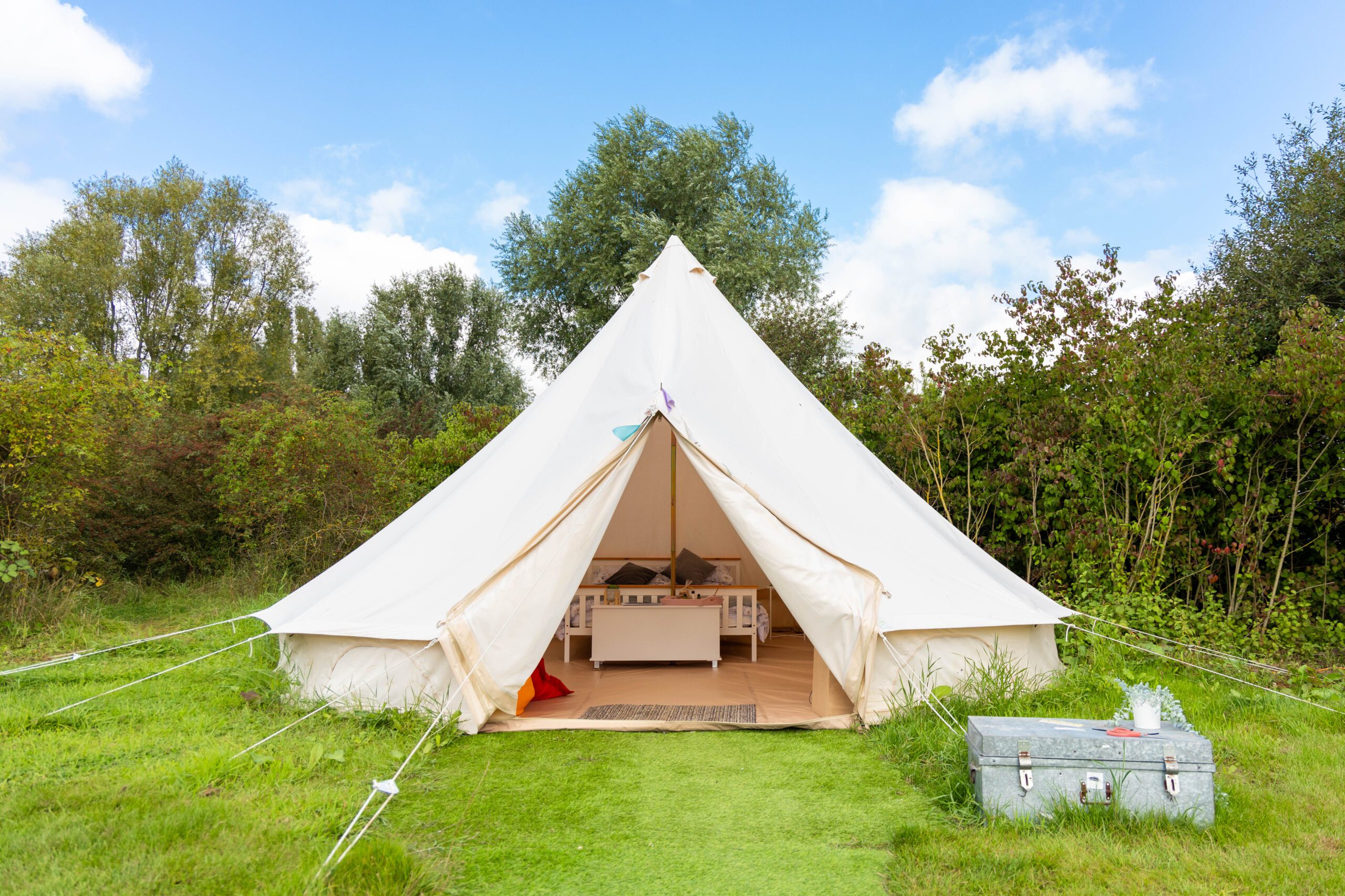 Our Bell Tents are the ideal choice for families and couples wishing for a tranquil place to stay in the surrounding of our tranquil lakes. Each tent is equipped with furniture, linen, storage, comfy seating, electricity and of course a few treats to complete your glamping experience.