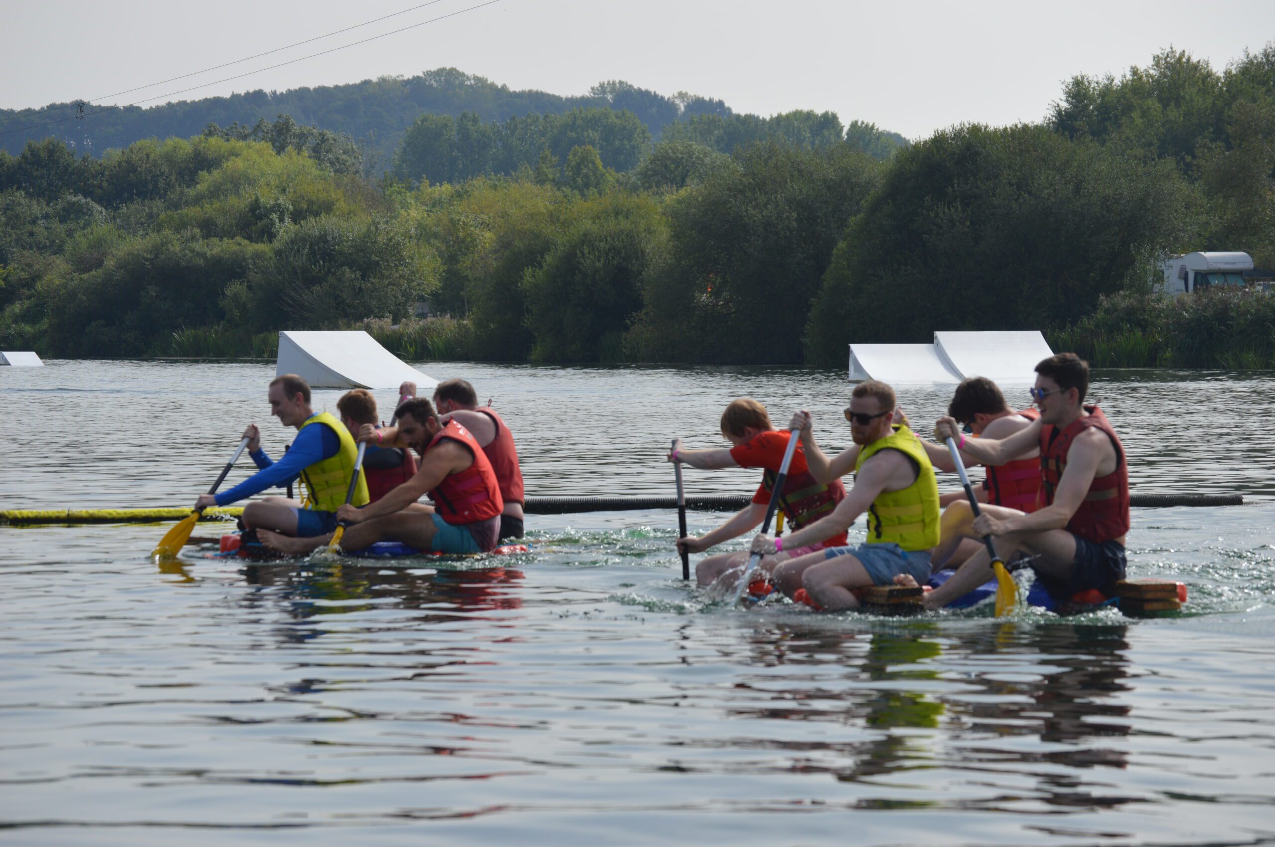 Raft Building is the perfect fun and engaging activity for all group bookings developing your teamworking skills, whilst competing against another team!
